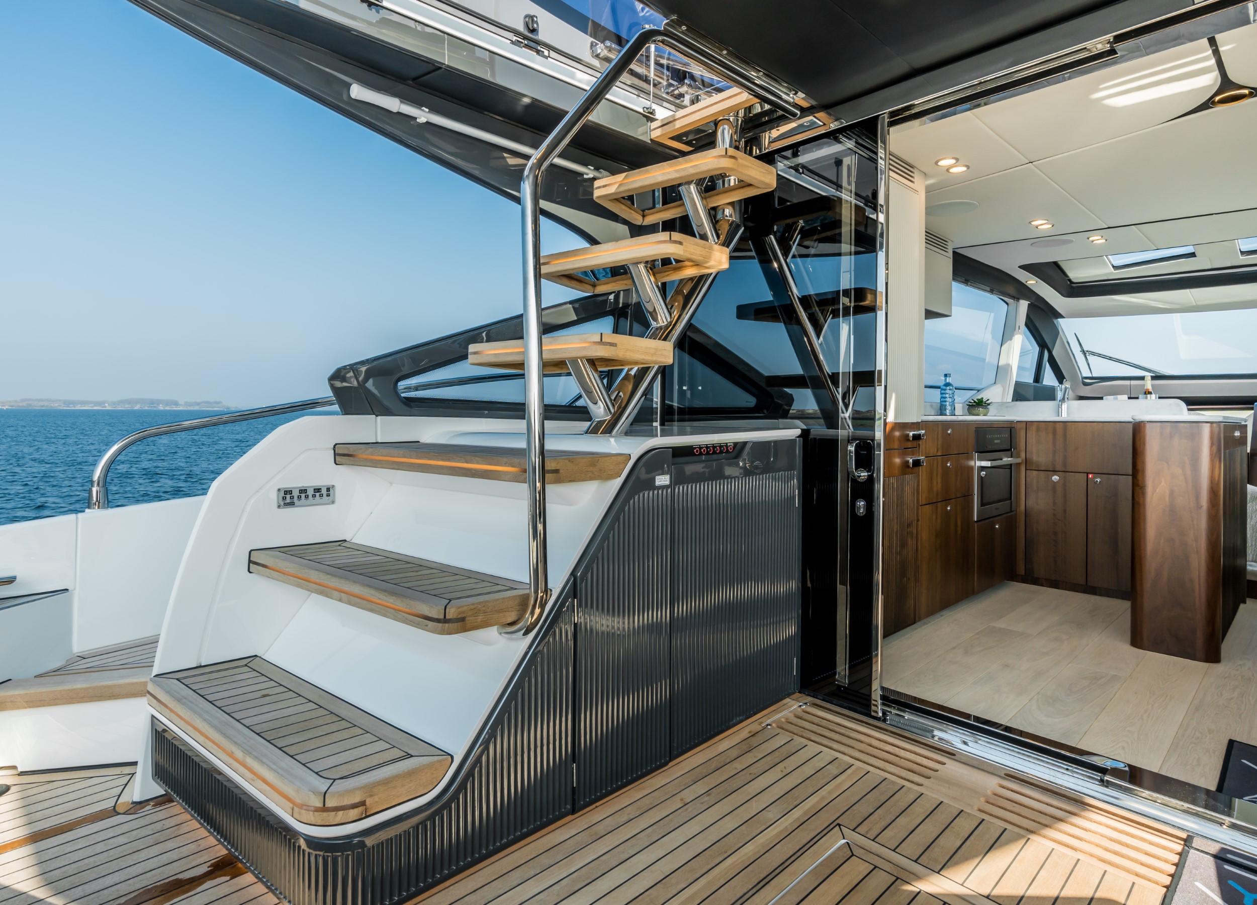 as you watch the world go by with champagne in hand, then climb up to the sportbridge and experience the exhilaration as the world flies by at up to 35