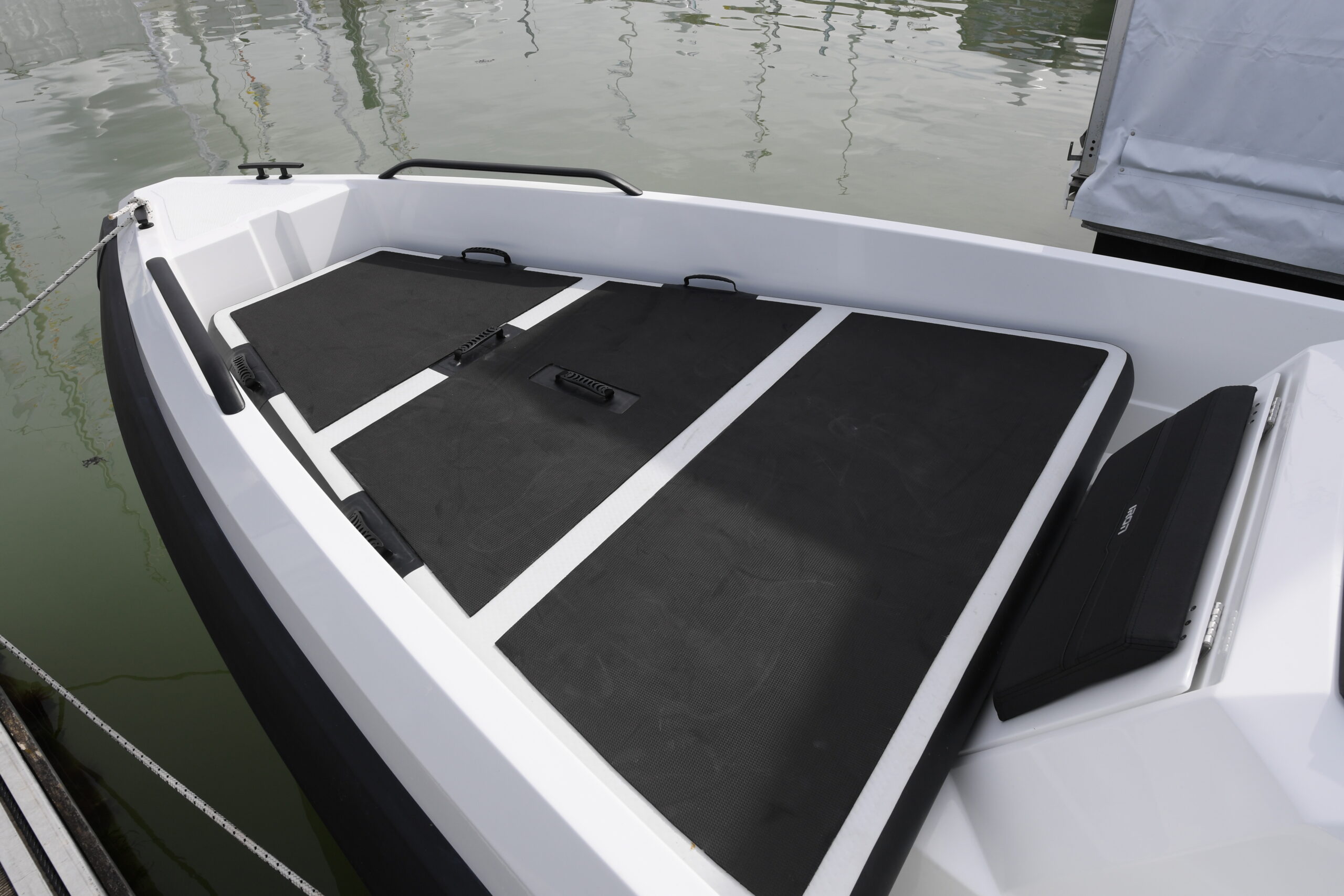 With its unique side fenders integrated into the hull (IRON FENDER), inspired by modern ships and aircraft, IRON boats have a character of their own. Even at dock, IRON boats do not go unnoticed. The design of the side fenders with air channels dampens movement, resonance noise and lowers the center of gravity.