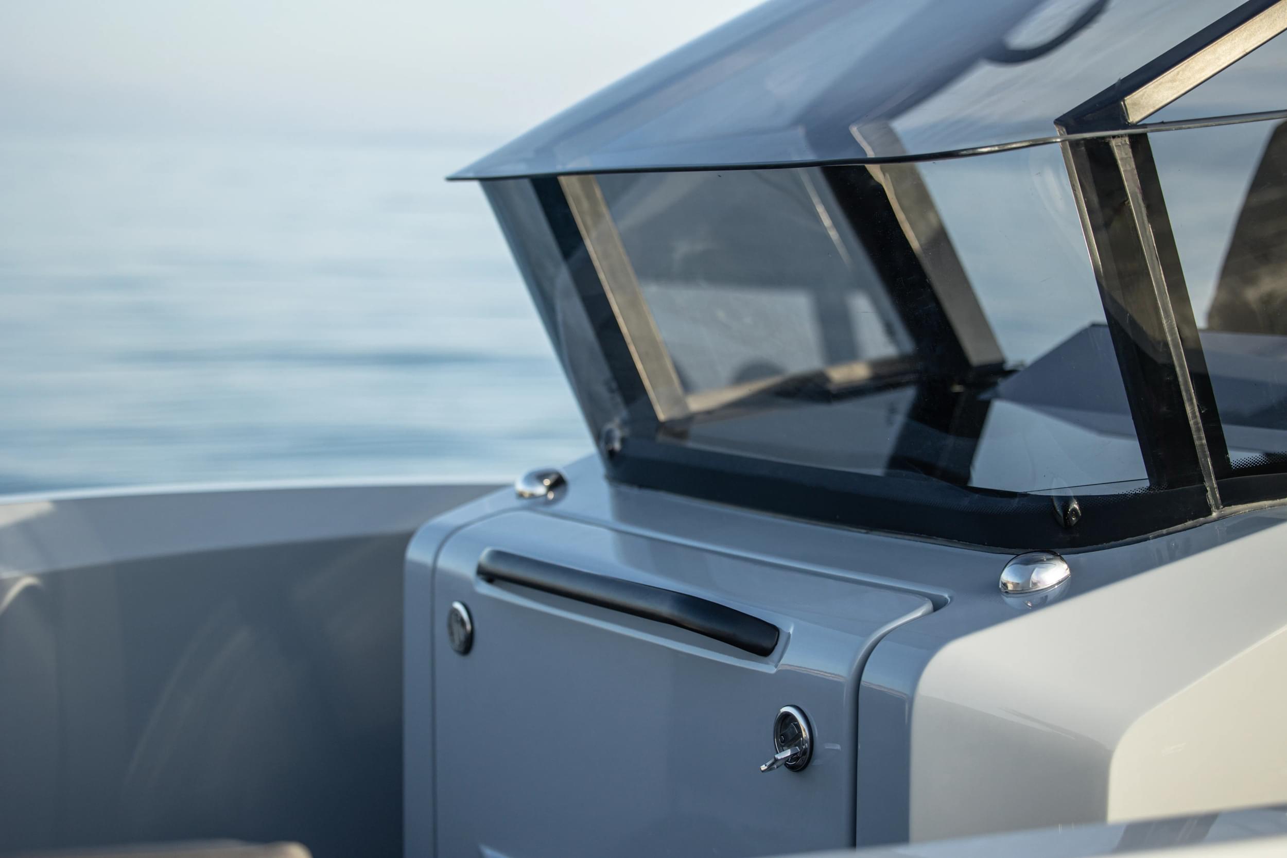 With its robust steel, glass, and carbon hardtop, the Roamer 29 boasts exceptional shielding, making it an ideal companion for expeditions across diverse weather conditions and temperatures. Whether cruising through the scorching heat of the Mediterranean or navigating the drizzling snows of Scandinavia, this convertible pilothouse guarantees outstanding protection.