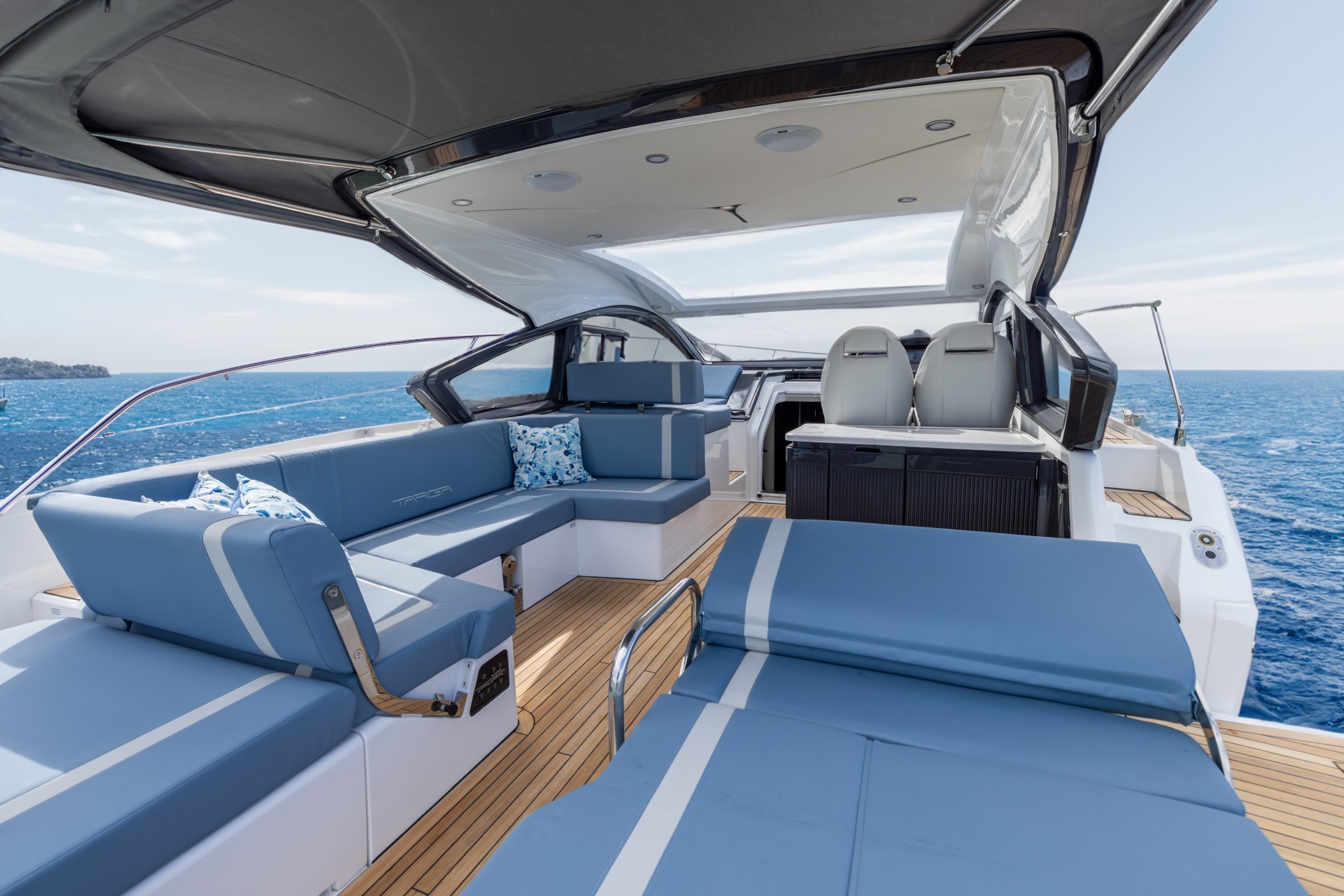 Fusion PLUS: Additional speakers and subwoofer in the cockpit Smart TVs, Apollo® audio system and in-wall speakers in the lower salon and guest cabin, WiFi connectivity throughout the boat