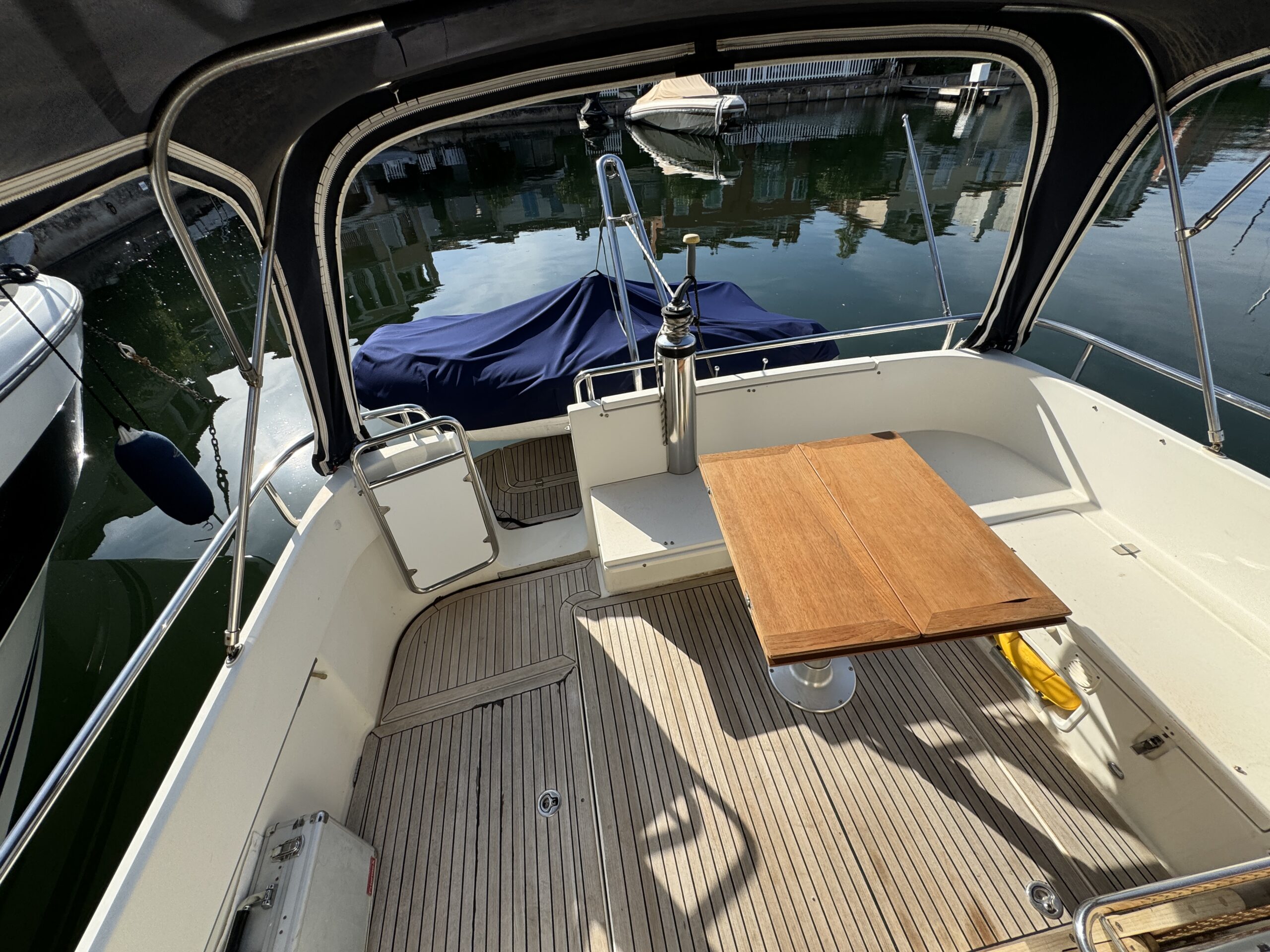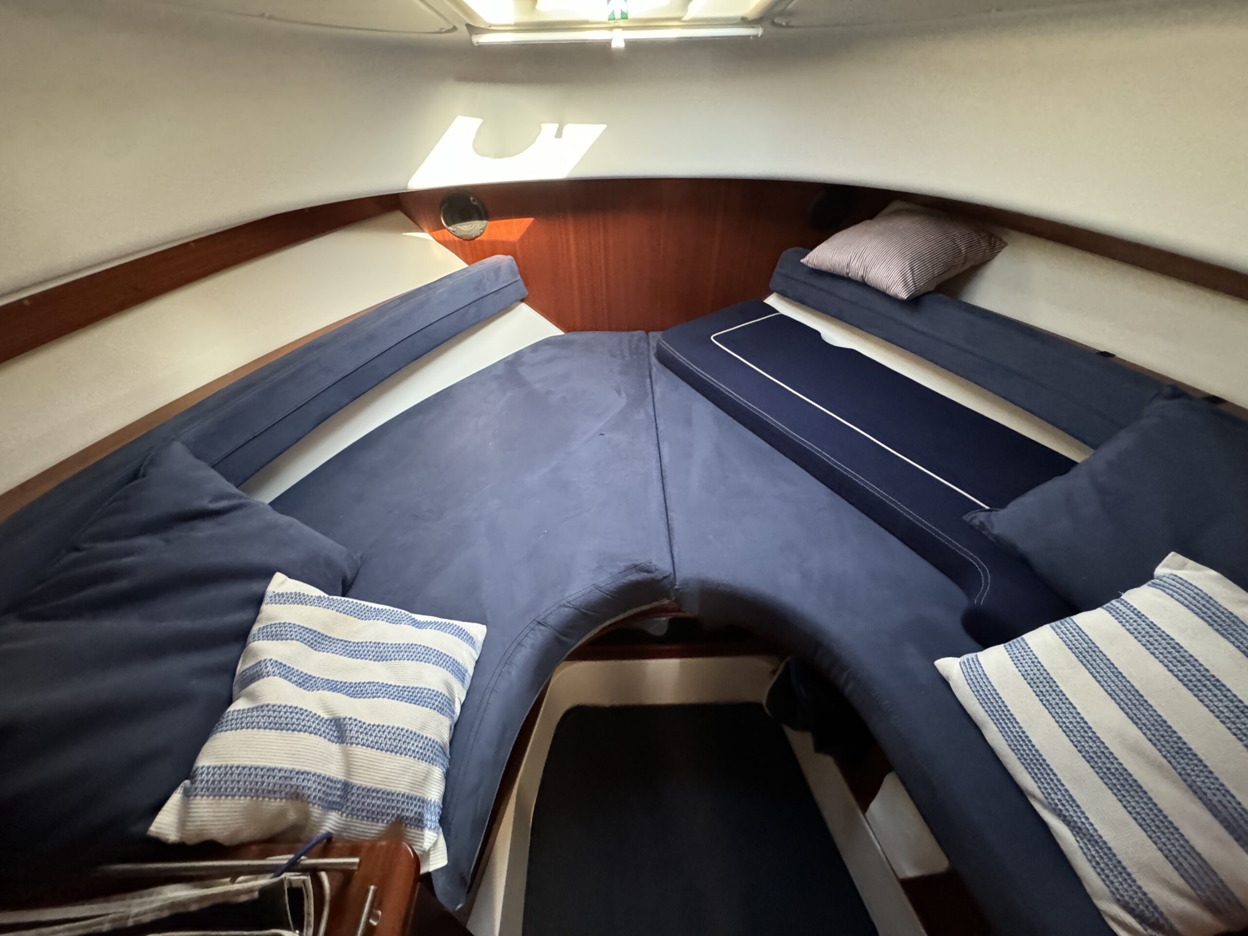 L-shaped bench seat in aft cockpit convertible into sundeck.