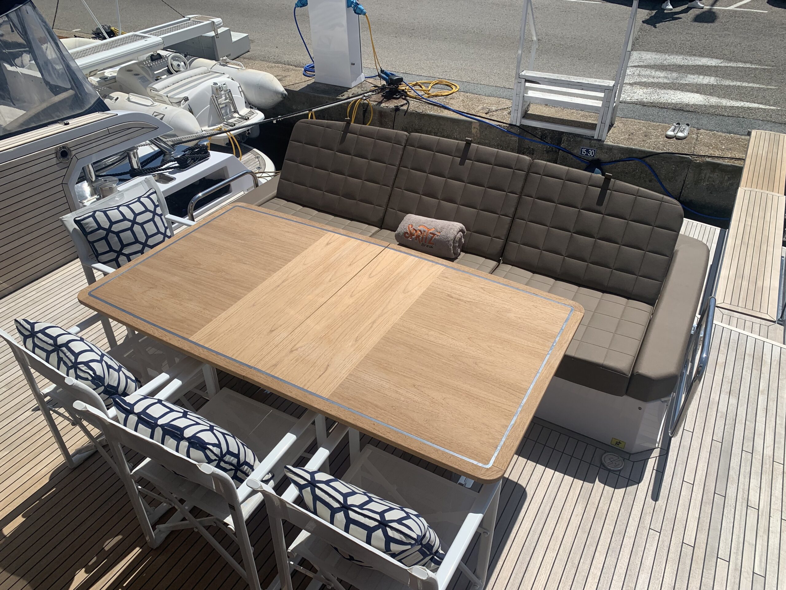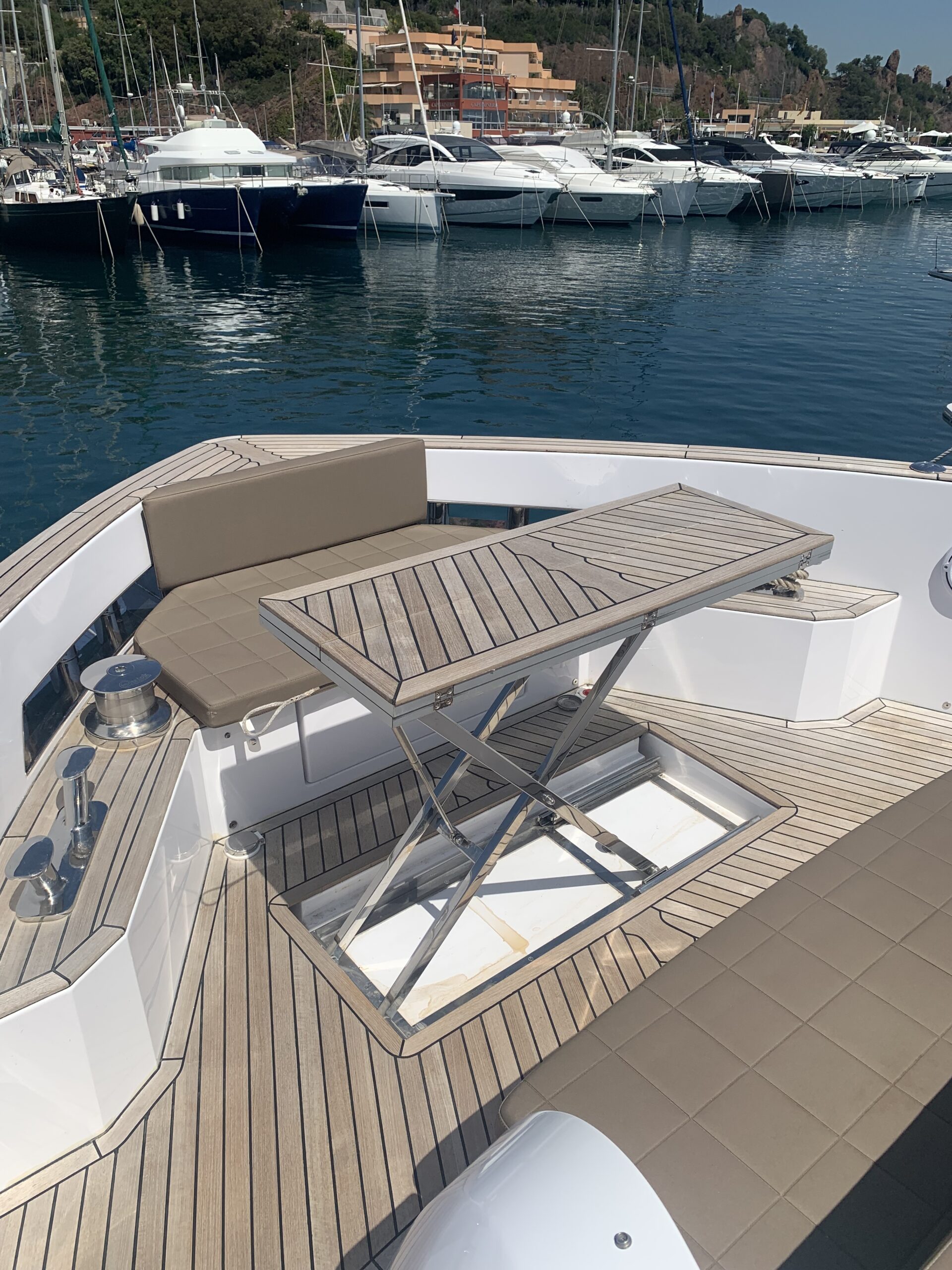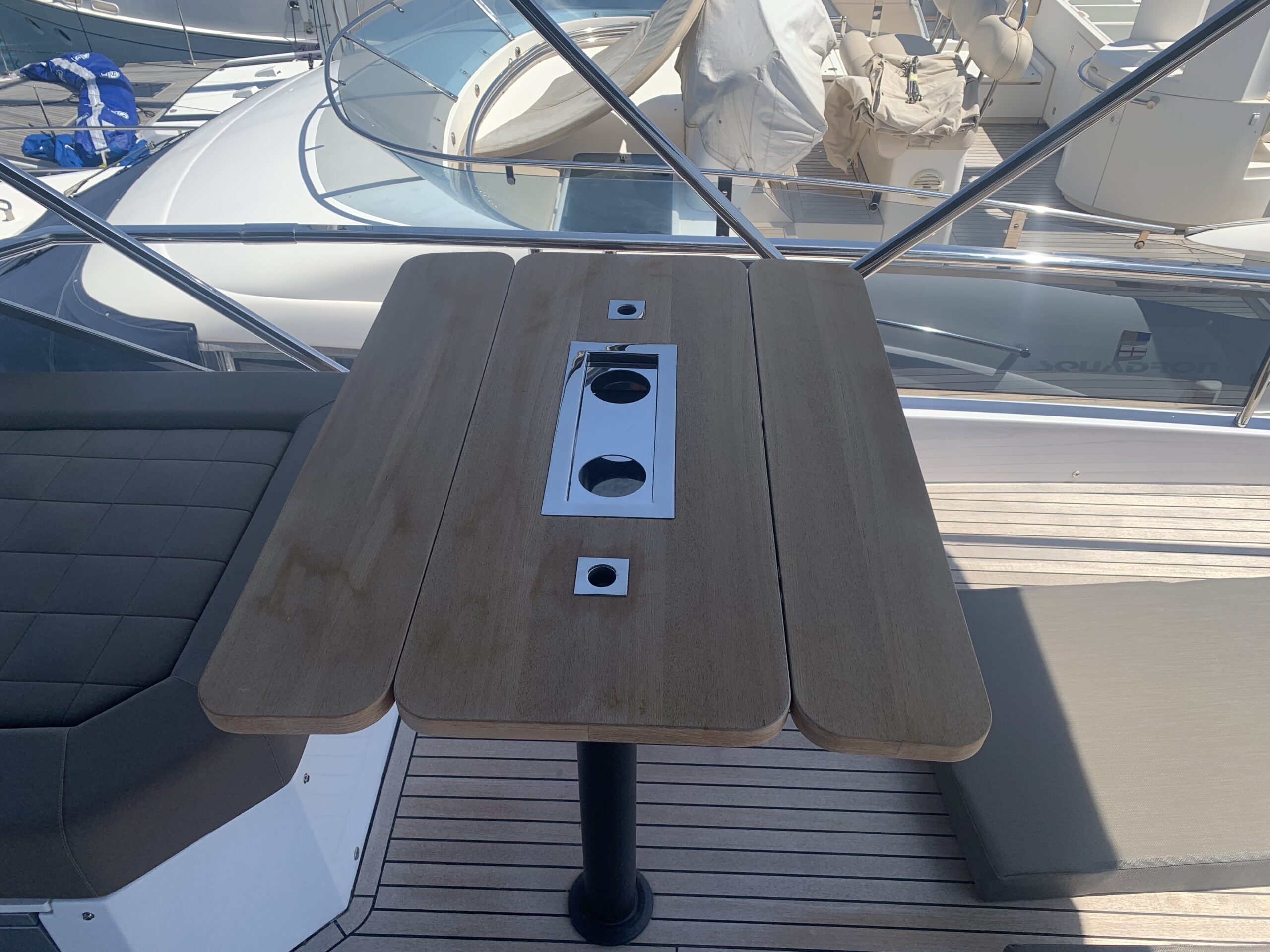 Electric teak table in the cockpit