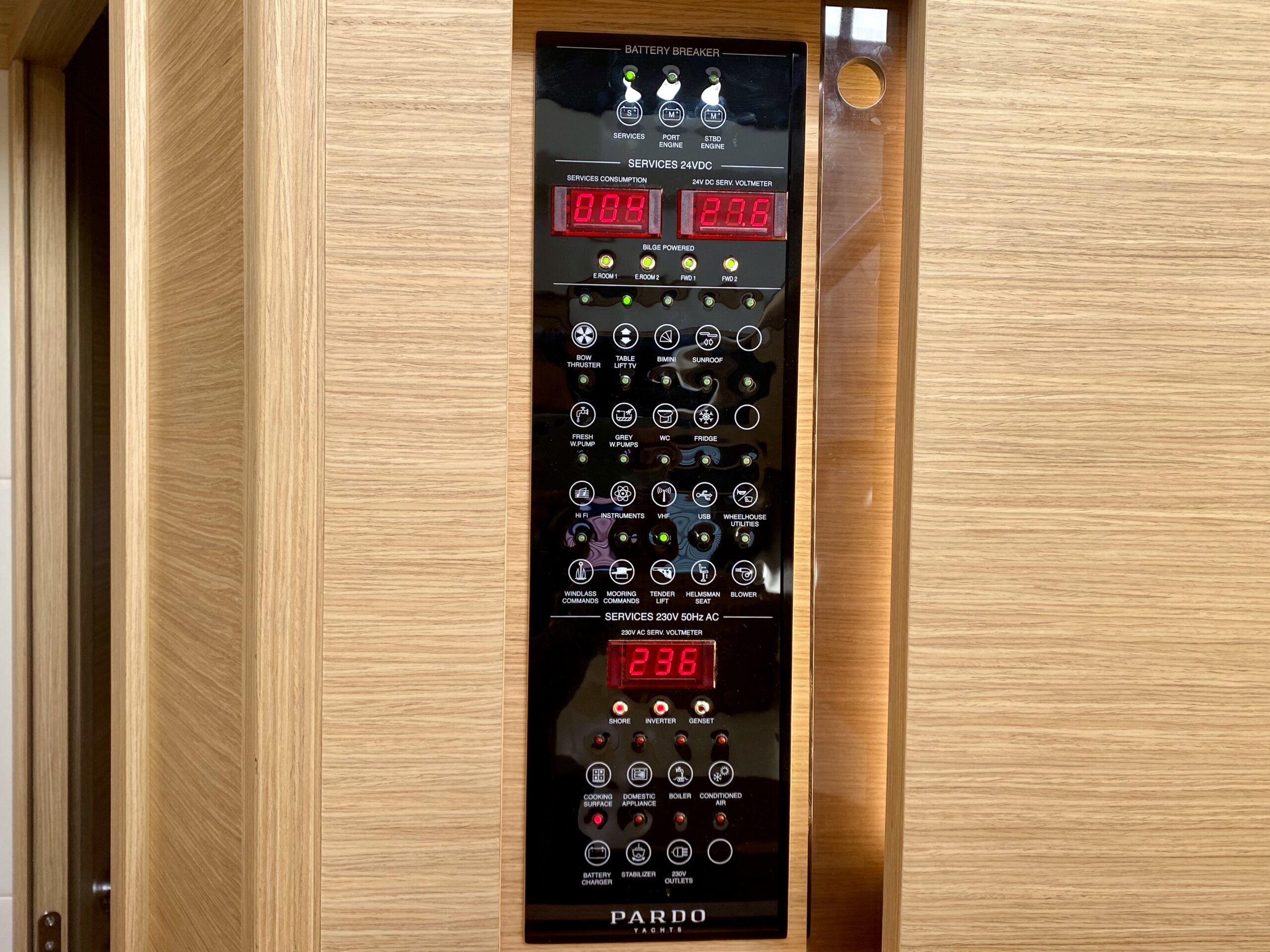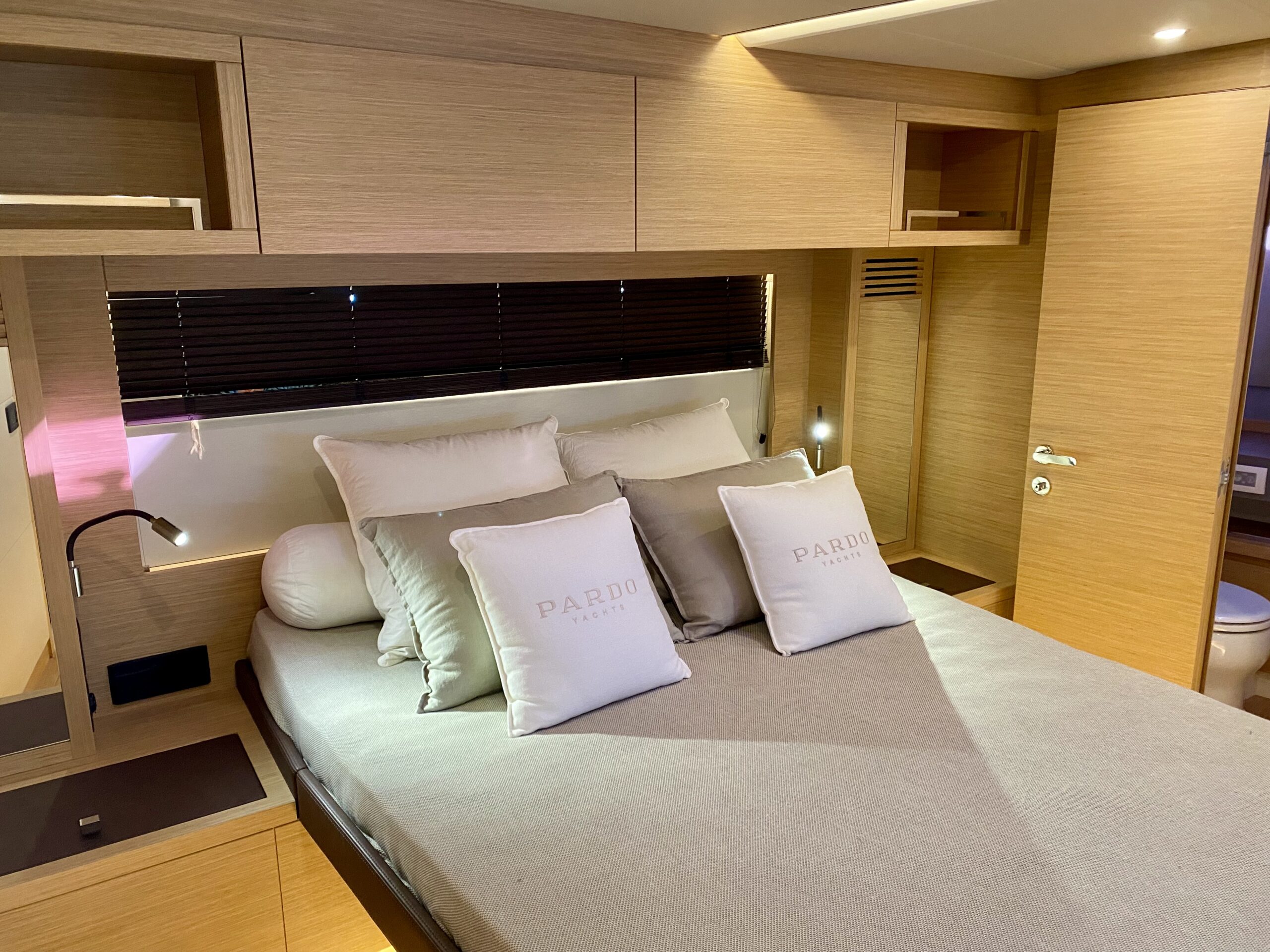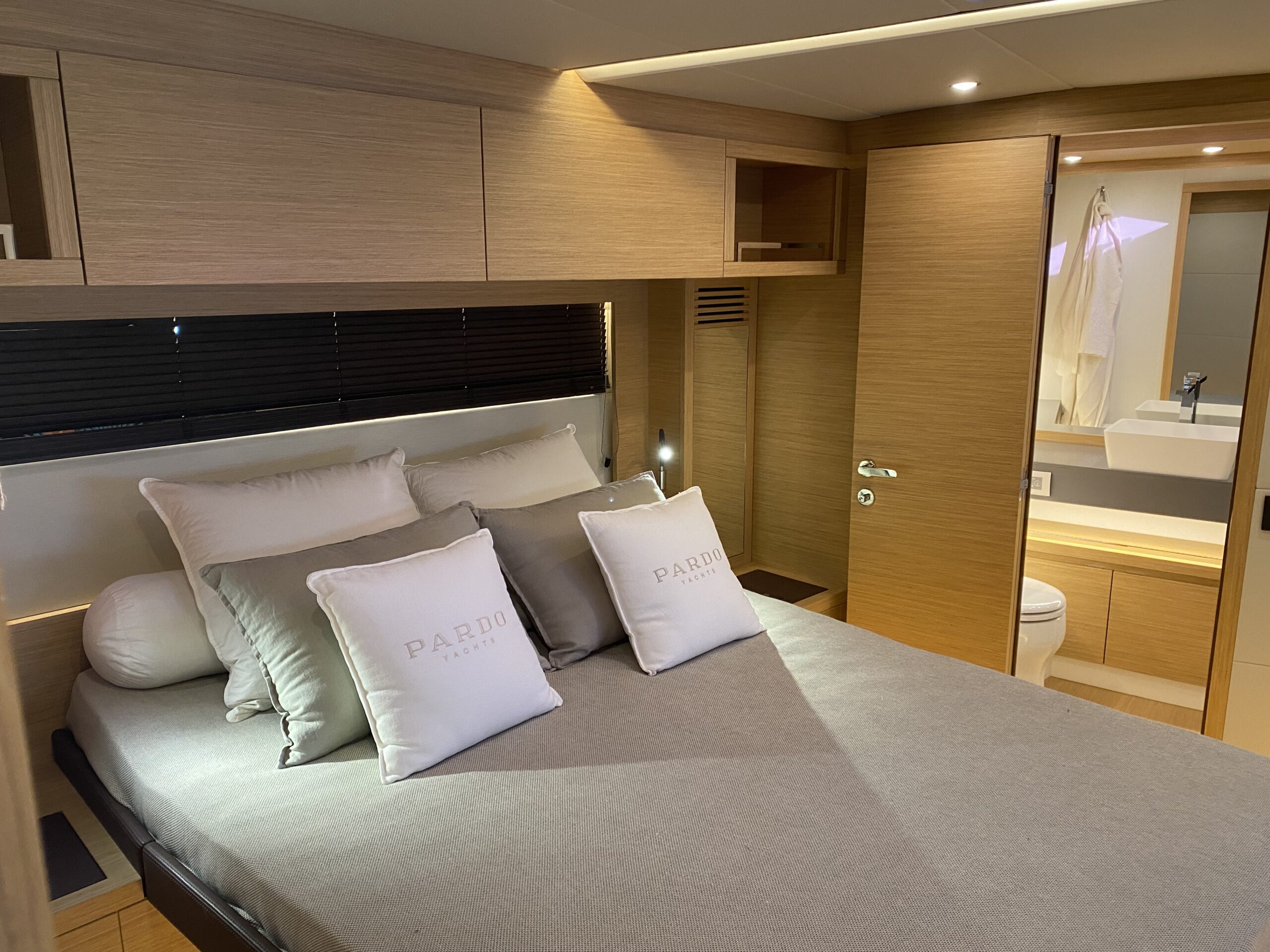 Premium Designer interior finishes (teak gratings and shower seats, gray technical marble vanity tops, teak toilet floors, leather coverings on the walls).