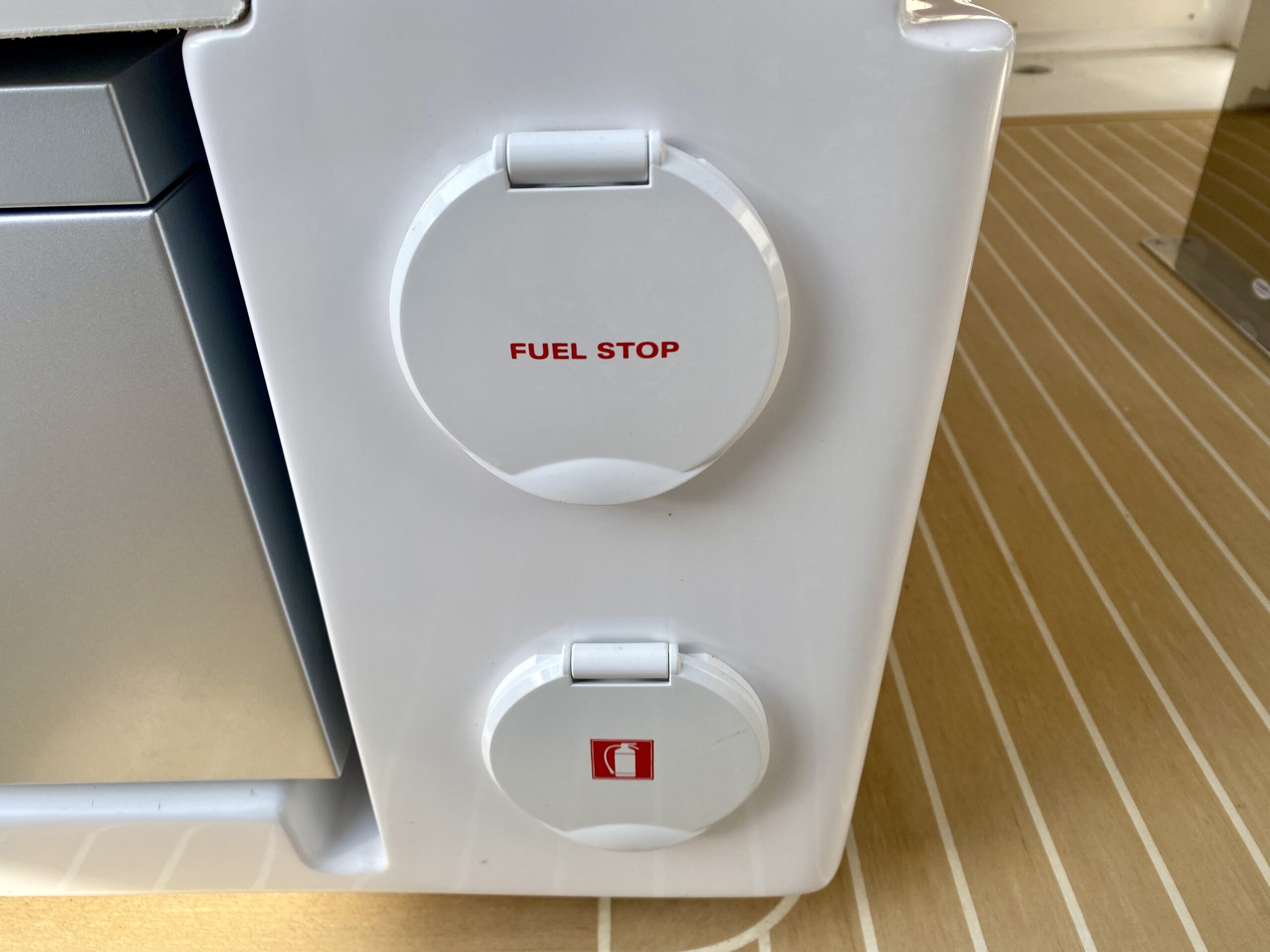 2 retractable cleats on the swim platform for the dinghy or jet ski