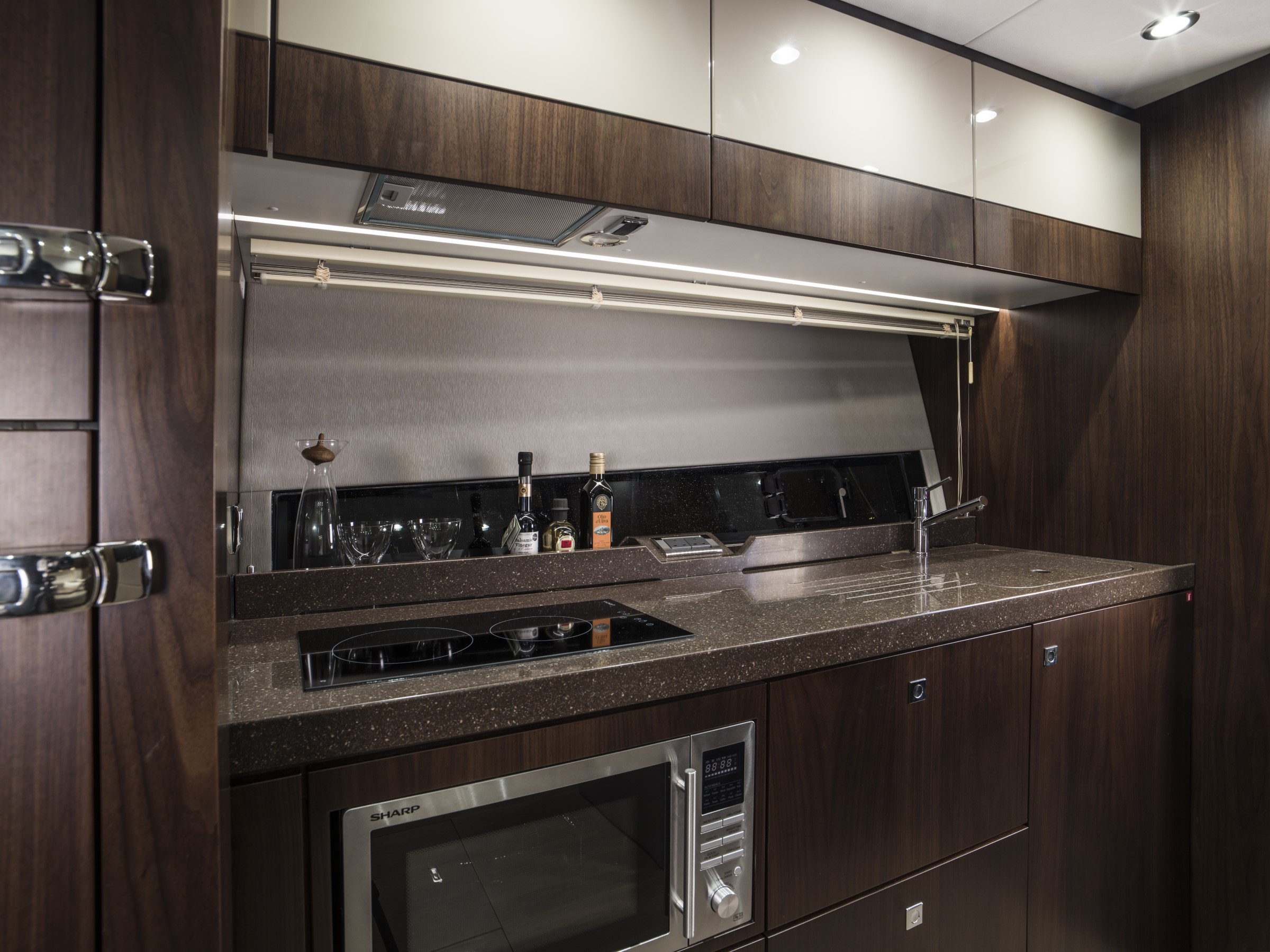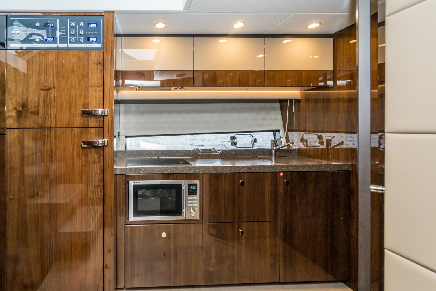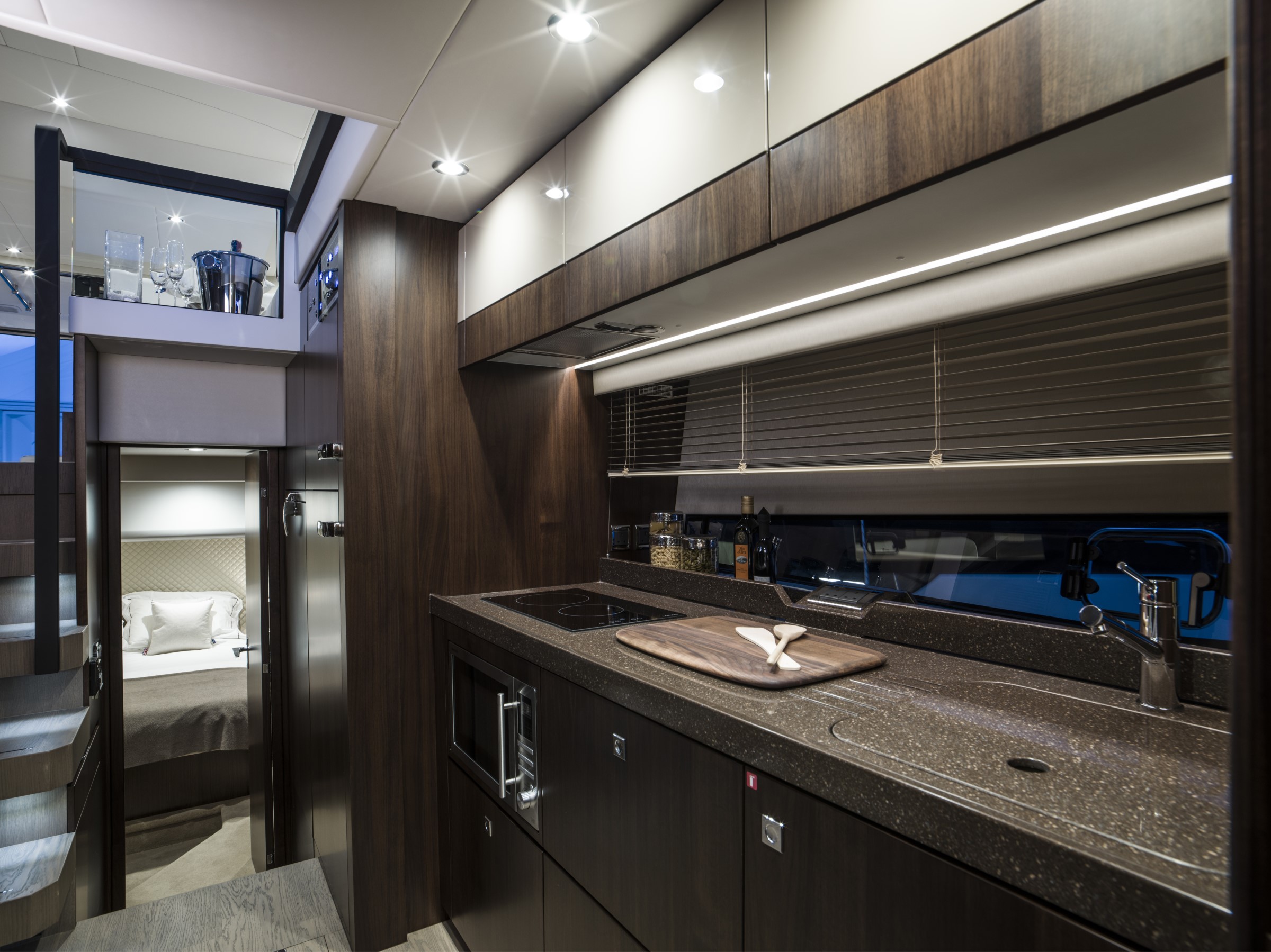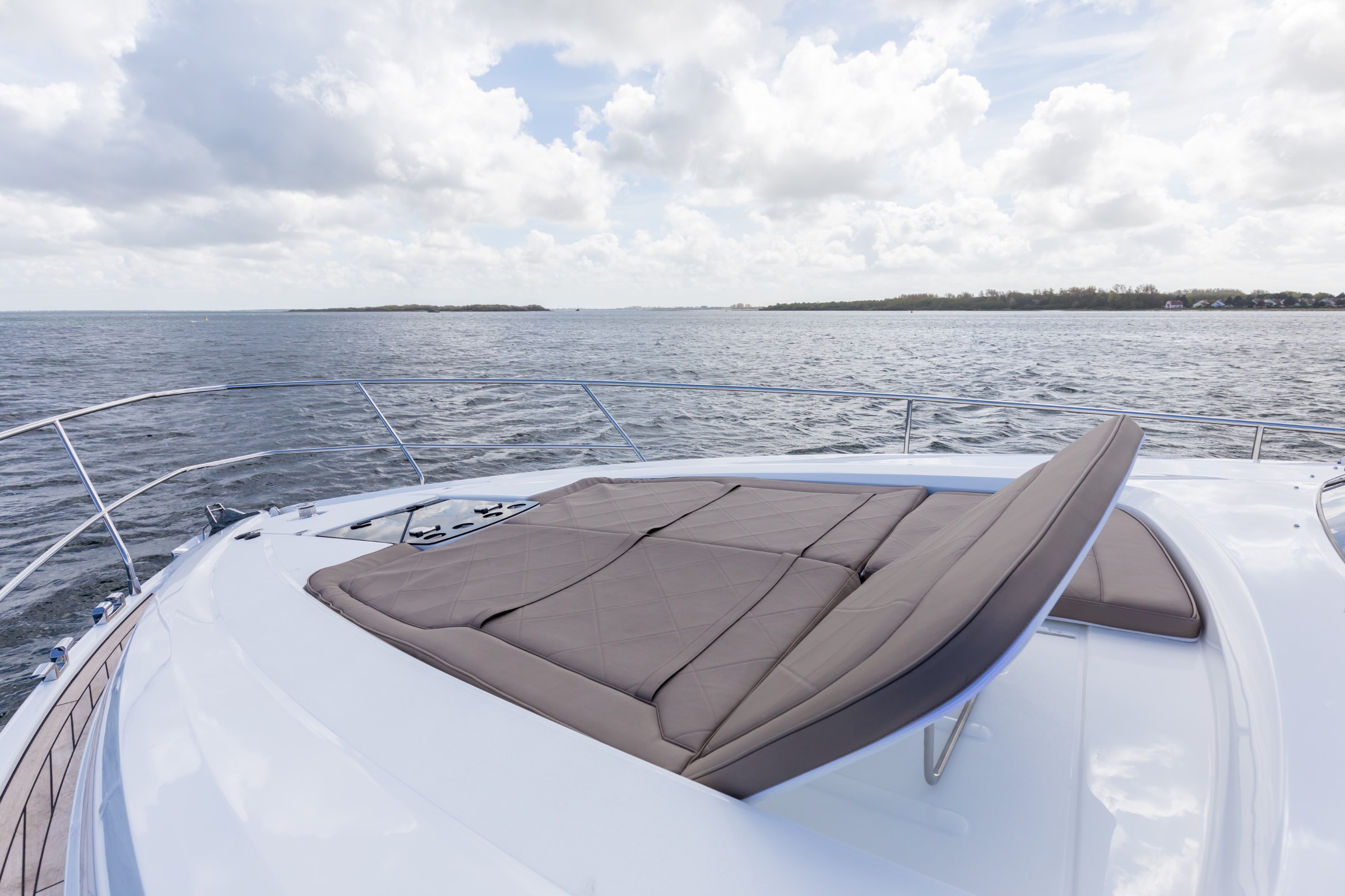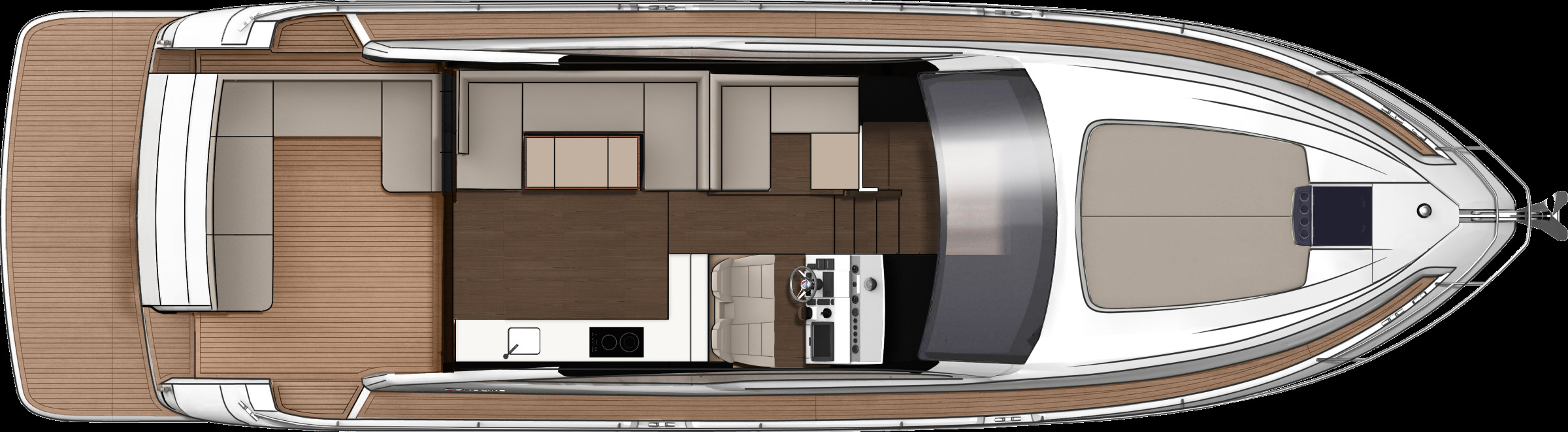 Les lignes épurées et puissantes du Targa 50 GT laissent place à une cabine luxueuse et spacieuse, dotée d'un ensemble de caractéristiques étonnantes et luxueuses, telles que des planchers en chêne, des plans de travail et des incrustations en blanc de Carrare et des moquettes torsadées en laine 100 % néo-zélandaise, qui ne manqueront pas de captiver le cœur et l'esprit de tous ceux qui monteront à bord. Et lorsqu'il s'agit de faire monter le rythme cardiaque, les deux moteurs Volvo IPS 650 ou 700 qui propulsent le Targa 50 GT vous laisseront sans voix. POINTS FORTS DE LA SPECIFICATION - Deux cabines / deux salles de bain - Choix de la cabine principale centrale ou avant - Pare-brise d'une seule pièce pour une vue imprenable - Grands bains de soleil luxueux à l'avant et à l'arrière - Garage entièrement intégré pour le Williams 285 TurboJet POINTS FORTS DE L'EQUIPEMENT EN OPTION - Propulseur d'étrave - 3 cabines - Stabilisateur gyroscopique Seakeeper 6 - Elégant éclairage d'ambiance extérieur bleu ou blanc - Système de positionnement dynamique Volvo - Restez au frais grâce à la climatisation haute capacité - Puissant système audio Sonos intégré