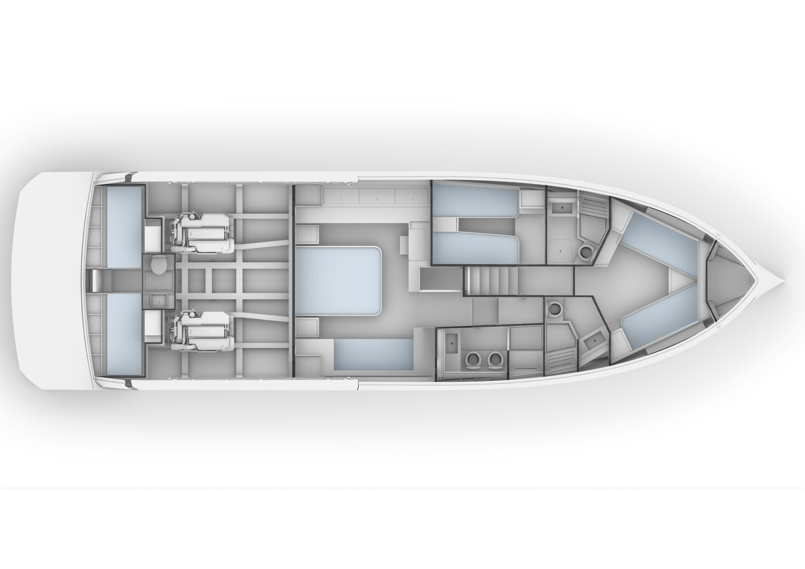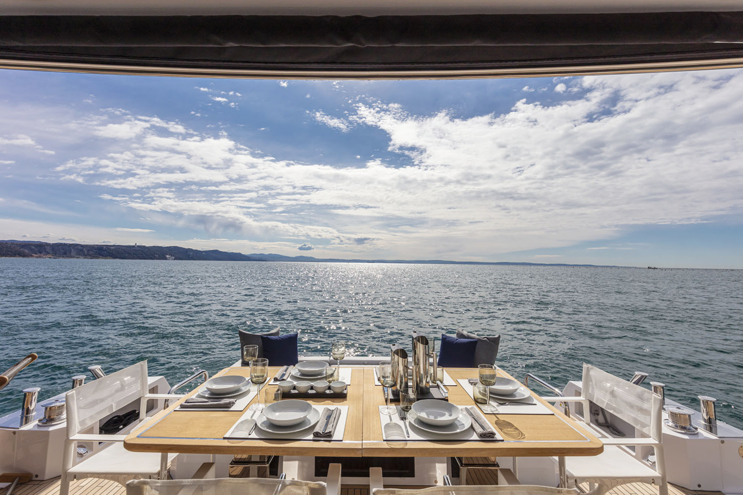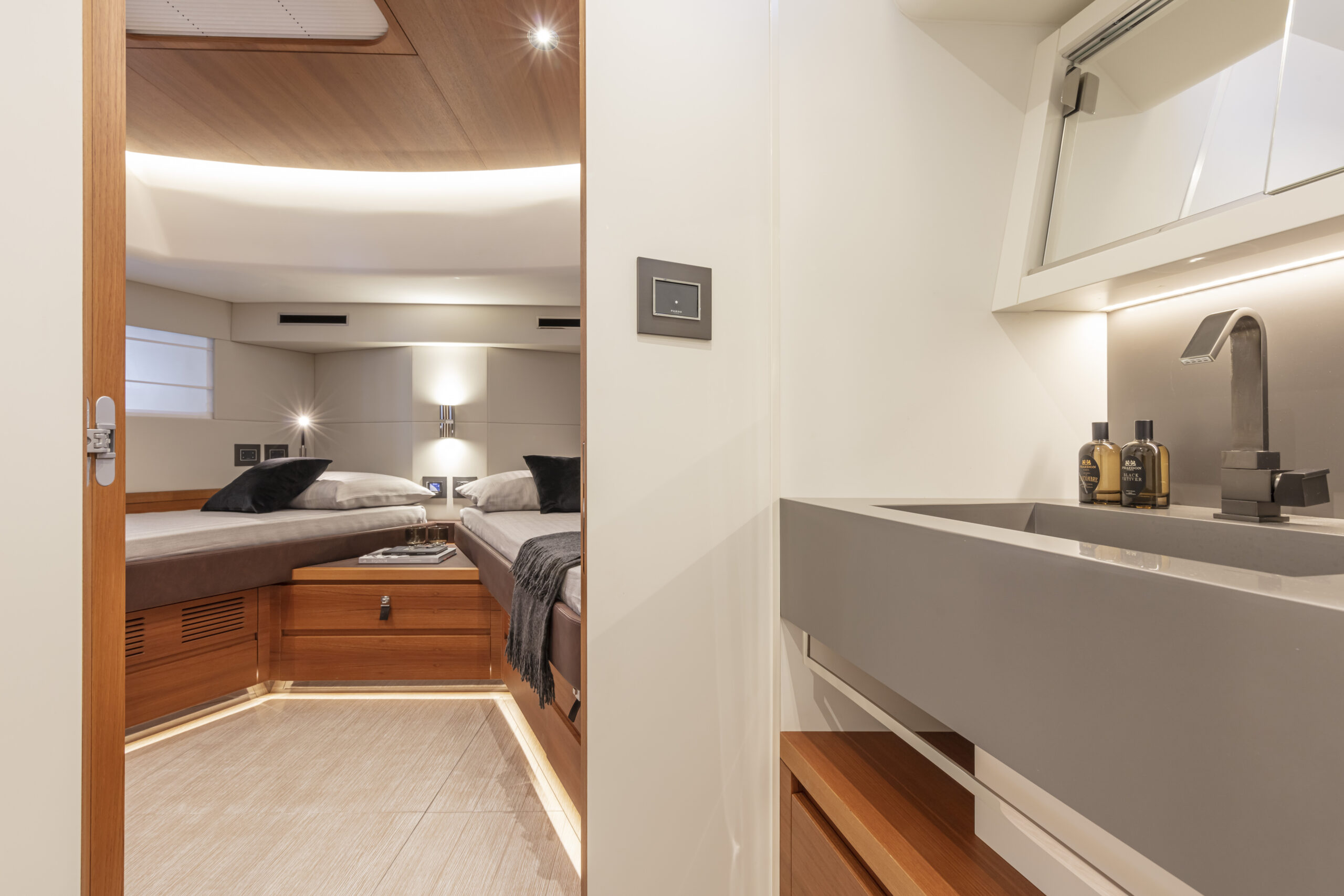 Ce Yacht de 18m de long sur 5.10m de large ne saura vous laisser indifférent. Toujours dans l'esprit Walkaround, l'ENDURANCE 60 s'intègre parfaitement auprès de ses confrères sans alourdir la ligne. Imaginé par David Leone pour la partie architecture navale et par Nauta Design pour le design intérieur en relation avec l'équipe de Cantiere del Pardo, ce motor-yacht est doté d'une coque à déplacement capable de naviguer à 10-12 noeuds en croisière contre 25 noeuds en vitesse maximum grâce à sa transmission en IPS 700 (800 en option). Le vitrage du cockpit peut s'abaisser pour une ouverture arrière à 180 degrés. En ajoutant les ouvertures latérales (beach mode), vous transformez votre yacht en véritable terrasse flottante !