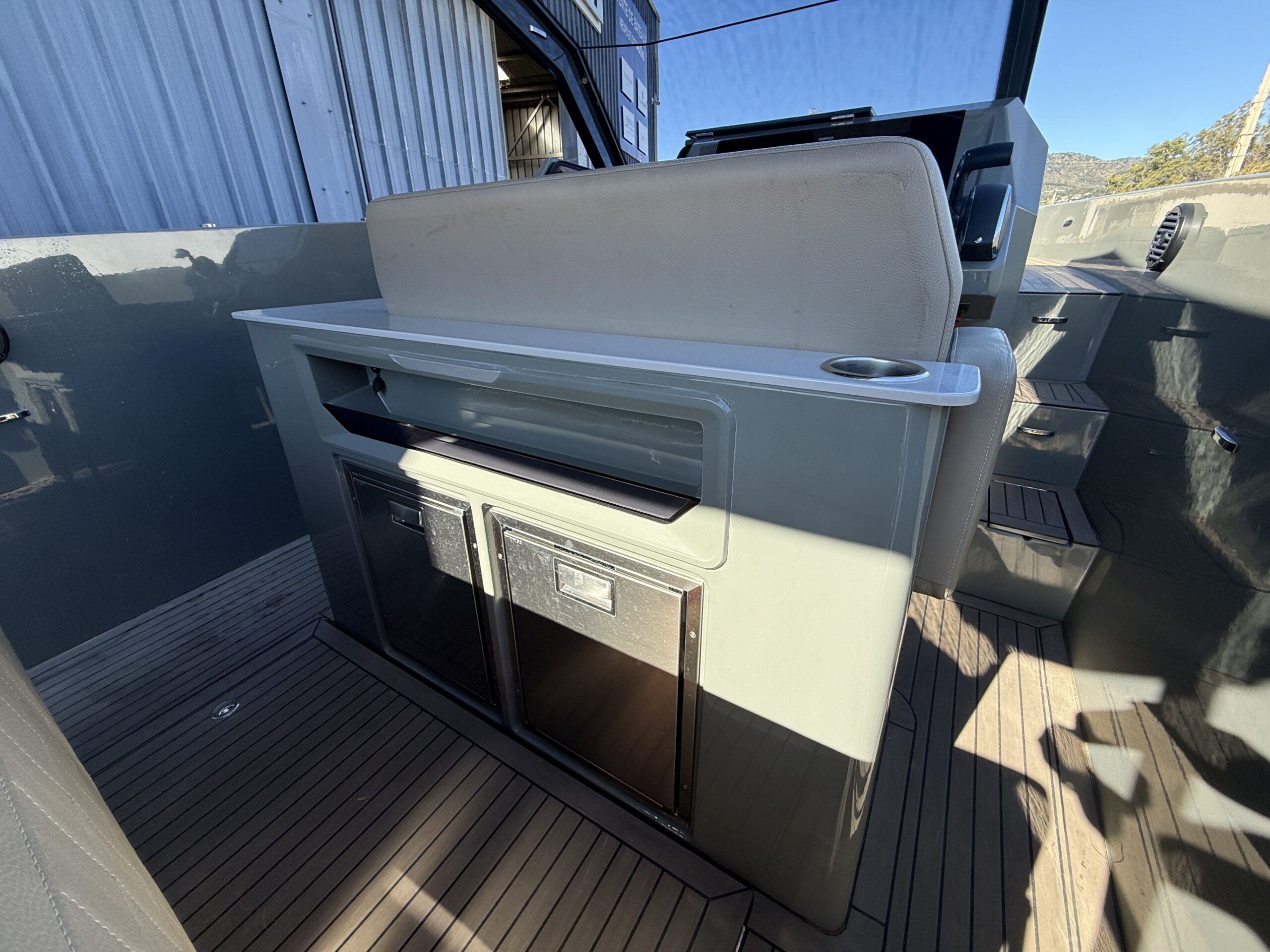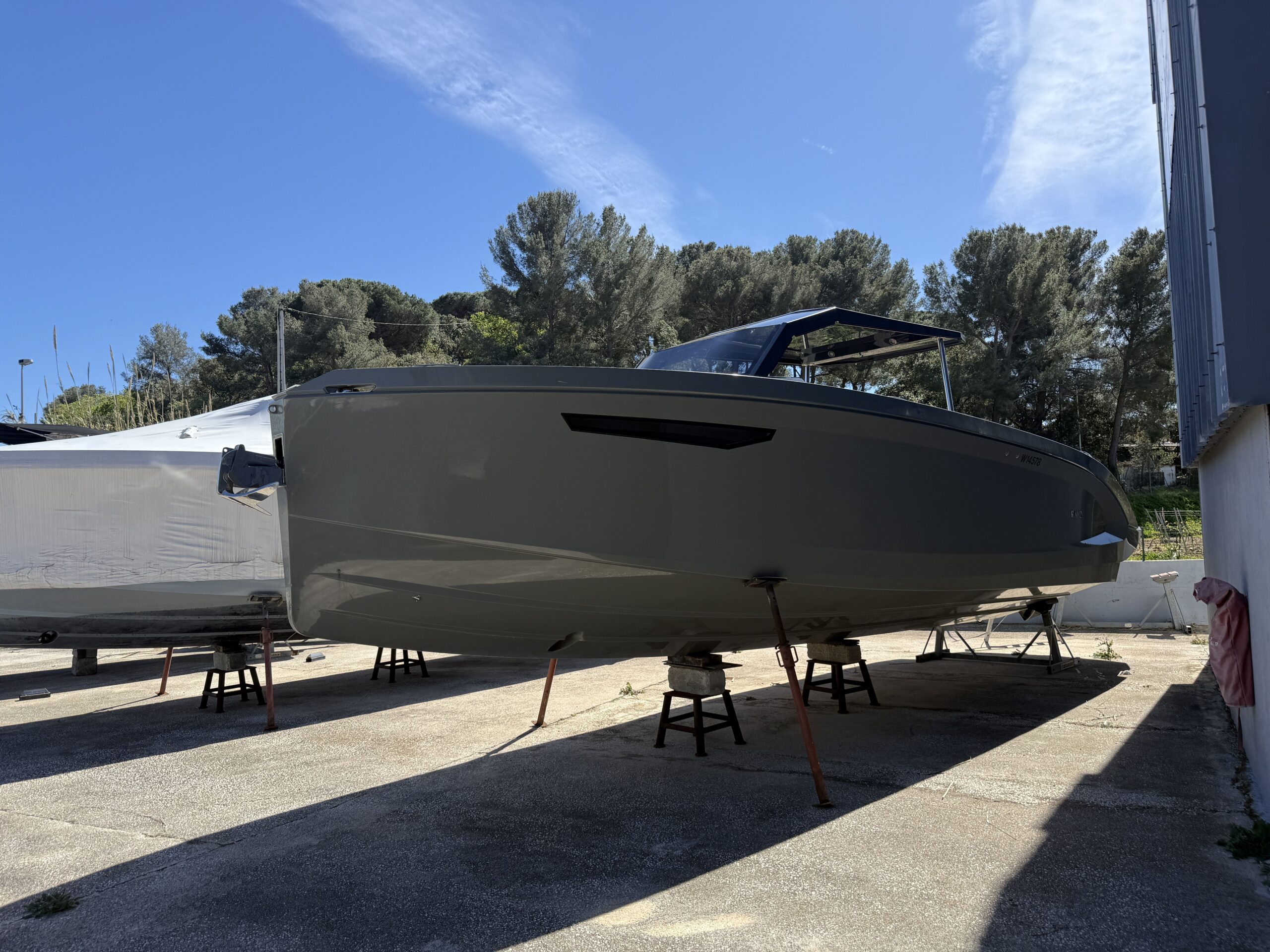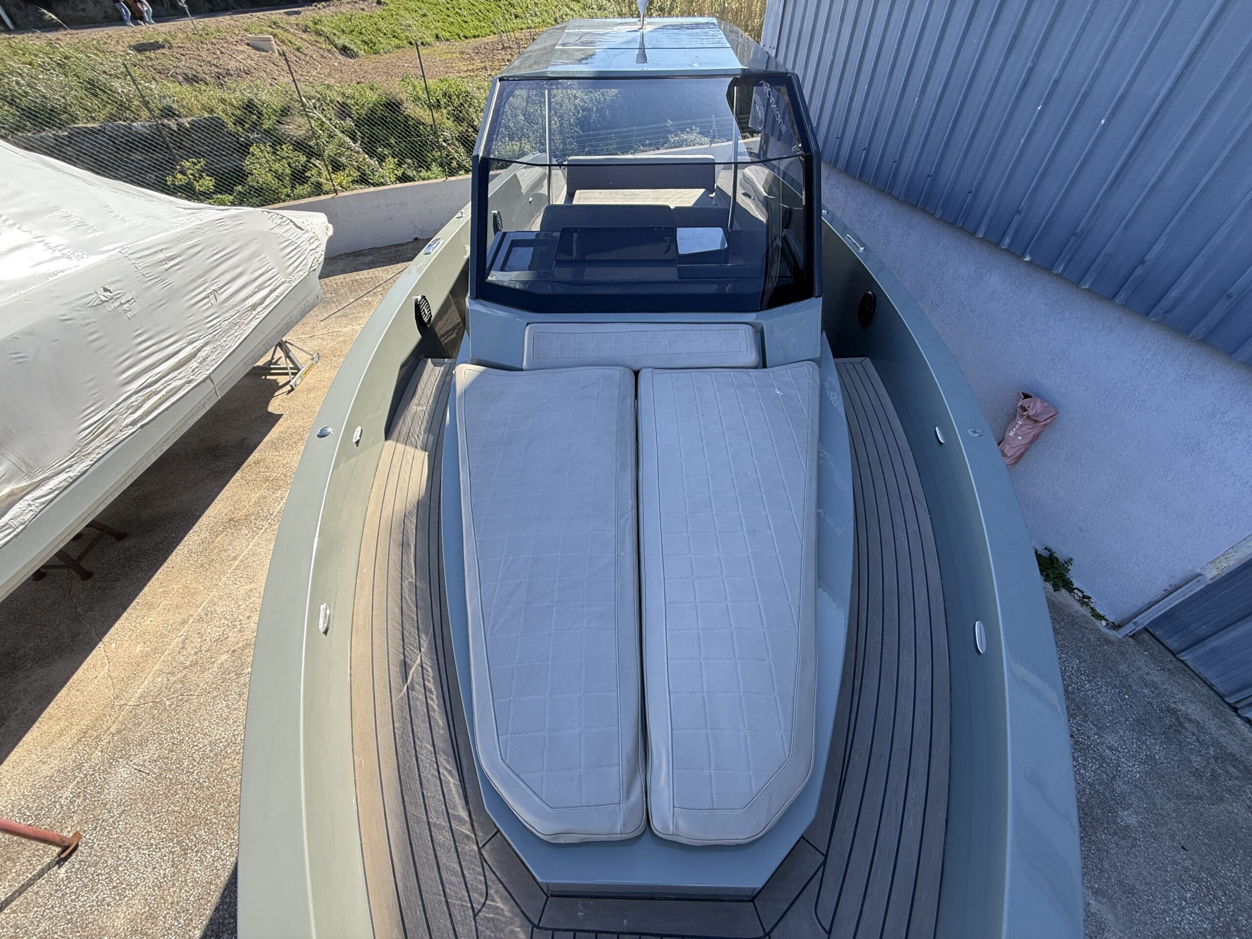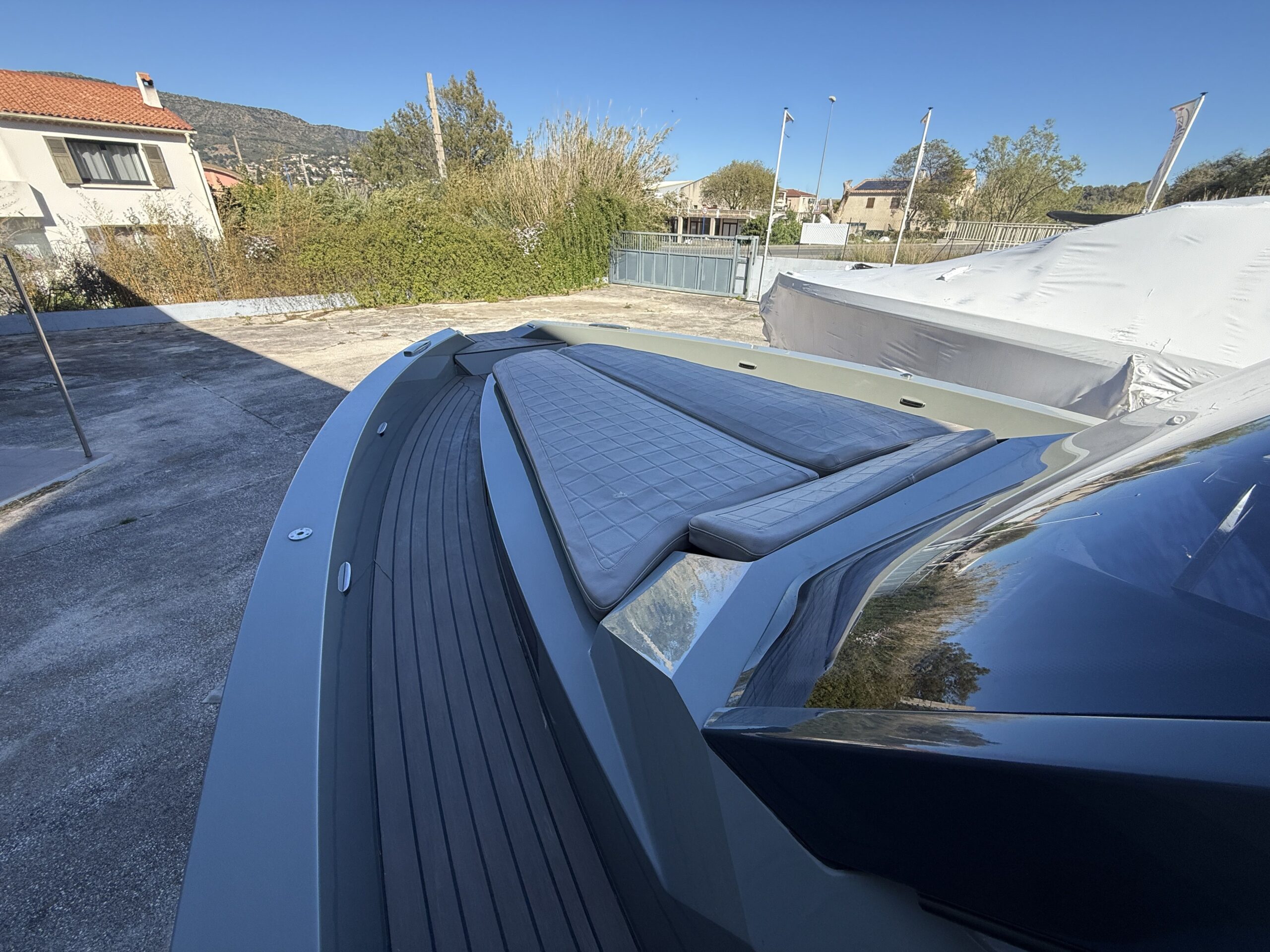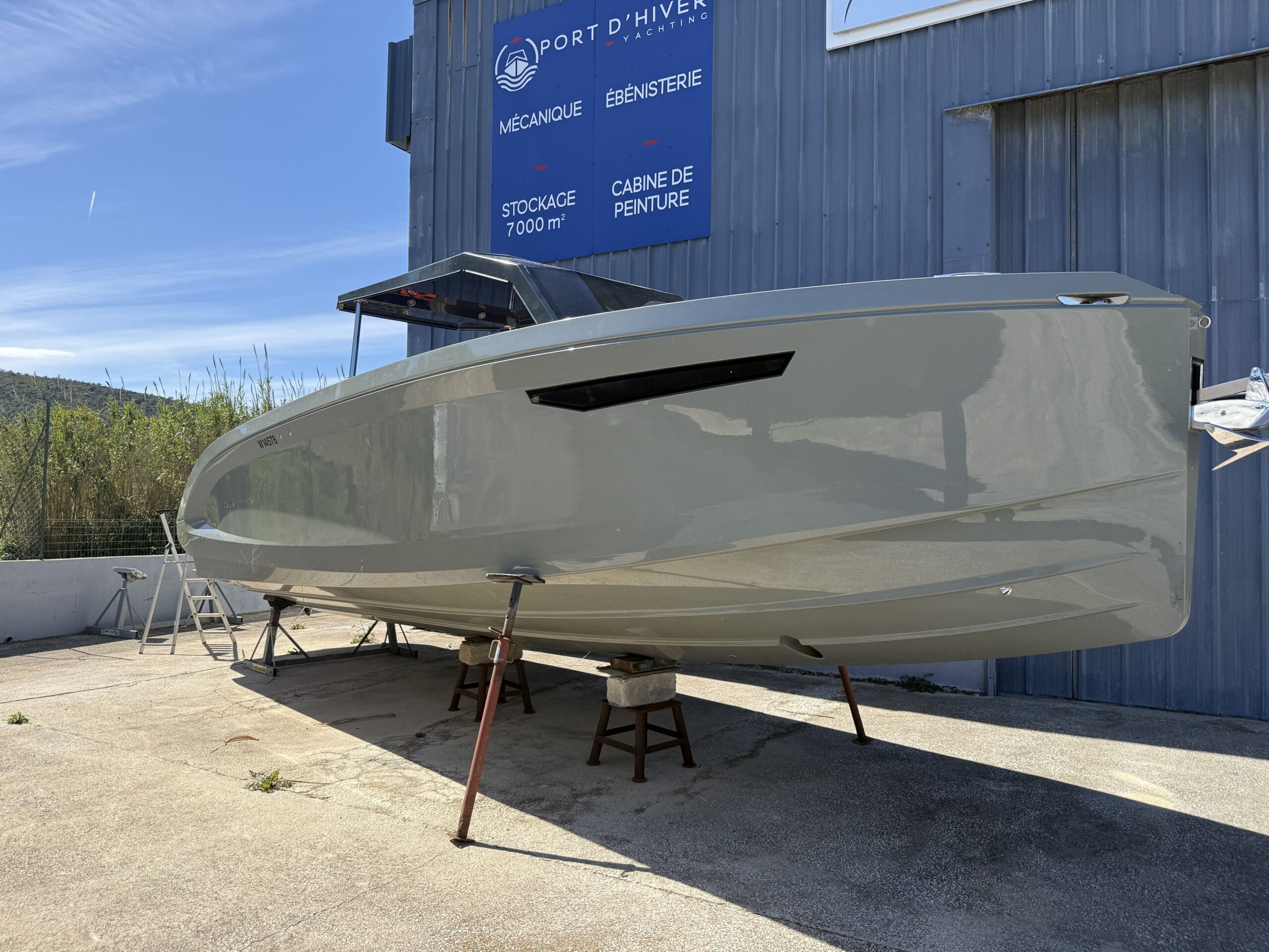 Coque : Custom Gel Coat "Mausgrau" (Gris Souris RAL 7005) offrant un look unique et sophistiqué.