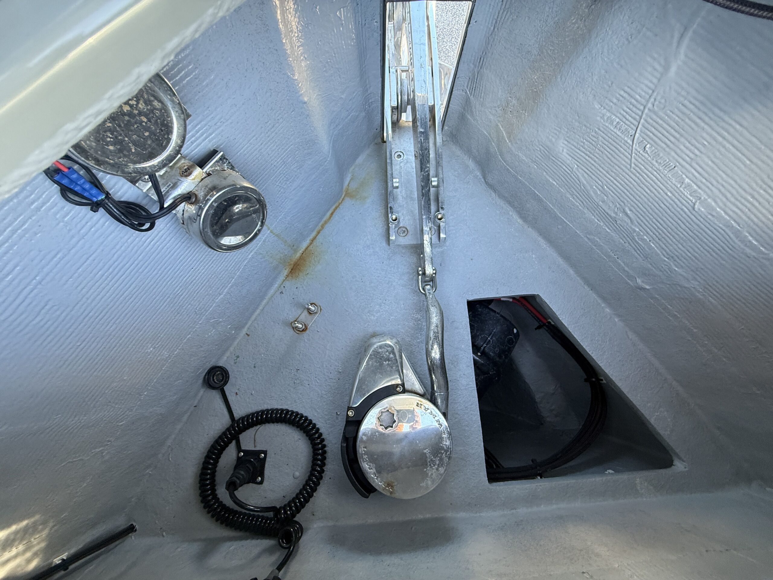 Navigation : Guindeau électrique avec ancre et compteur de chaîne au cockpit + Sondeur de profondeur.